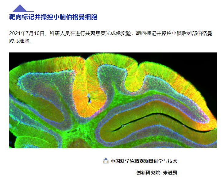为庆祝中国共产党创建100周年,大力弘扬以爱国、创新、求实、奉献、协同、育人为内涵的新时代科学家精神,中国科研实验室科技摄影联盟举办摄影、微视频作品征集活动。PA视讯国际博士研究生朱进飘摄影作品“靶向标记并操控小脑伯格曼细胞”荣获优秀作品二等奖。